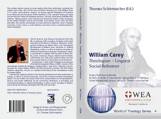 ZurückThomas Schirrmacher (Ed.). William Carey - Theologian â?? Linguist â?? Social Reformer. World of Theology. Vol. 4. Culture and Science Publishing: Bonn, 2013. 153 pp., ISBN 978-3-86269-060-2